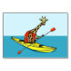 Uma ilustração engraçada de uma girafa de desenho animado em um caiaque marinho. A girafa caiaque engraçada está vestindo uma jaqueta vermelha.