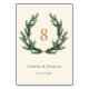 Watercolor evergreen pine wreath table number with names and date. For more advanced customization of this design, please click the BLUE DESIGN TOOL BUTTON above!