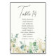 Este elegante cartão de gráfico de assento do número da mesa é perfeito para um casamento simples e rústico ou qualquer ocasião especial. O design floral apresenta magnólia e eucalipto em aquarela com folhagens. Personalize e adicione cada número de mesa que você precisa ao carrinho individualmente.