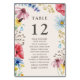 Número da Tabela de Recepções de casamento de flor selvagem decorado com flores silvestres de cor d'água, que você pode personalizar com qualquer número de tabela e seus nomes de convidados. Esta design botânica russa tem uma bonito fronteira de flores silvestres, incluindo a margarida-de-papoila-dormideira, a cabeça-seca e o trevo. Uma floral moderna elegante com tema de jardim boêmico e feminino. Por favor, navegue na minha loja na coleção Charm de Flor Selvagem, para obter itens correspondentes.