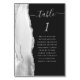 The left-hand edge of this elegant modern wedding table number card features a gray and white watercolor agate border trimmed with faux silver glitter. The word "table" appears in silver gray handwriting script on an off-black background. Add the names of your guests who are assigned to each table.