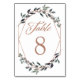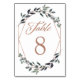 Este cartão de mesa de casamento elegante e moderno apresenta uma forma geométrica em rosa dourado falso, rodeada por belos ramos de folhagem. Certifique-se de personalizar e comprar um cartão separado para cada mesa.