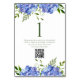 Este letreiro é elegante e sofisticado com folhagens naturais fluídas e hortênsias azuis em várias tonalidades. A fonte é moderna e nítida, facilitando a visualização dos números das mesas pelos seus convidados na recepção. Há um pedido de compartilhamento de fotos no seu site de casamento usando o seu código QR. Os convidados vão adorar compartilhar suas belas fotos com você. Para criar os sinais de número de mesa, basta selecionar Personalizar este modelo e digitar o número da mesa, digitar o URL do seu código QR, um de cada vez, e adicioná-los ao seu carrinho. Um por número de mesa. Em seguida, repita até ter todos os cartões de número de mesa. Vai levar literalmente segundos para criar cada um.