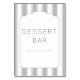 This wedding tabletop sign features a minimalist and contemporary design with alternating light gray and white vertical stripes framing a central rectangular label. The clean, white label showcases bold, uppercase text for "DESSERT BAR" in a modern sans-serif font, followed by a friendly invitation to "please take a treat!" in a lighter weight typeface. The overall layout is balanced and symmetrical, creating an inviting and approachable atmosphere perfect for encouraging guests to indulge in sweet treats at your event.