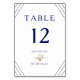 Listras Náuticas Âncora Dourada Número da Mesa Casamento Carta