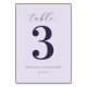 This elegant table card design features a sophisticated and minimalist style, perfect for a wedding celebration. The large, bold number "3" takes center stage with an understated yet stylish font, complemented by a soft lavender background that exudes romance and grace. The typography is refined, adding to the overall timeless charm of the piece. Ideal for setting a chic and inviting atmosphere at your special event, this design seamlessly blends modern elegance with classic wedding aesthetics.