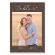 This elegant wedding table card features a warm, romantic photo design with soft golden hues that evoke a serene and joyful atmosphere. The layout is simple yet sophisticated, framed by a stylish border with cursive typography at the top and bottom, adding an air of refinement. Perfect for capturing cherished moments, this design beautifully complements any wedding decor, inviting guests to partake in the celebration's intimate ambiance. Its customizable elements allow for personalization, making it a thoughtful addition to your special day.