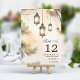 Luzes de Lanterna Botânica de Árvore Rústica Número da Mesa de Casamento. Bela e elegante decoração de casamento em aquarela com lanternas penduradas botânicas rústicas. Este design de casamento moderno personalizado pode ser facilmente personalizado com os detalhes do seu casamento.
