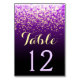 Luzes espumantes no céu com número de mesas de casamento roxas colocam cartão com luzes amarelas brancas e pálidas que brilham sobre fundo de gradiente roxo. Este convite de casamento moderno, elegante e na moda faz parte de uma coleção de casamentos ou conjunto e é completamente personalizável perfeito para um casamento de verão ou de inverno.