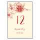 Esta tradicional carta de número da mesa de casamento chinesa apresenta uma ramificação de arte de linha vermelha e um símbolo duplo vermelho em um fundo creme. Convite de casamento chinês igual disponível.