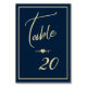 Números de Tabela de Recepção de Casamento Elegante e marinho desenhados com texto dourado sobre fundo de marinho. Cada cartão inclui o texto: Número na frente e no verso. Para personalizar, basta inserir um número por cartão de mesa solicitado. Este número será repetido automaticamente no verso. Certifique-se de visualizar o Marinho completo e a Dourada Elegant Wedding Collection para obter cartões e acessórios correspondentes.