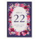 Número da Tabela de Casamento Floral do marinho. Ajude os hóspedes a encontrar seus assentos com facilidade usando esses números elegantes de mesas, apresentando uma coroa floral de aquarela em tons ricos de joias de rosa, burgundy, blues e roxo, colocados sobre um fundo azul marinho profundo. Personalizado com seus nomes e data de casamento, esta design é perfeita para qualquer estação — acrescentando um toque aconchegante e romântico para cair e casamentos no inverno ou uma sensação nova e vibrante para as comemorações de primavera e jardim de verão. Totalmente personalizáveis, esses números de tabelas melhoram sua decoração de recepção com uma aparência perfeita e coordenada. NOTA: o texto é Marinho Azul para corresponder à coleção, mas pode ser facilmente alterado.