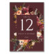 Numeração De Mesa Marsala Borgonha Pêssego Floral Aquarela
