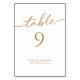 Mesa 9 Cartões de Número Personalizados da Tabela de Casamento da Caligrafia Dourada... Nossa carta de número da mesa de casamento "mesa 9" contém um roteiro elegante de caligrafia dourada seguido do número da mesa e do nome da noiva e do noivo e da data do casamento. Os números de tabela 1 a 12 estão disponíveis no mesmo design e são vendidos separadamente.