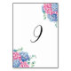 Numeração De Mesa Mesa 9 de Aquarela Rosa e Azul Hortênsias