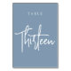Numeração De Mesa Mesa com script de mão azul Dusty THIRTEEN