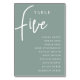 Numeração De Mesa Mesa com script de mão CINCO + nomes de convidado
