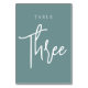 Cartões simples e chic em aqua empoeirado e branco fazem uma declaração elegante no seu casamento ou evento. Design apresenta "mesa [number]" em uma combinação de olhares de serif clássica e de caracteres de script manuscritos. Design repete-se de ambos os lados. Cartões numerados individualmente vendidos separadamente; solicite cada número de tabela individualmente da nossa coleção.
