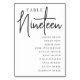 Cartões simples e chic em preto e branco clássico fazem uma declaração elegante no seu casamento ou evento. Design apresenta "mesa [number]" em uma combinação de olhares de serif clássica e de caracteres de script manuscritos, com nomes individuais de convidados por baixo. Design repete-se de ambos os lados. Cartões numerados individualmente vendidos separadamente; solicite cada número de tabela individualmente da nossa coleção.