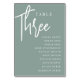 Cartões simples e chic em Eucalyptus Green e White fazem uma declaração elegante no seu casamento ou evento. Design apresenta "mesa [number]" em uma combinação de olhares de serif clássica e de caracteres de script manuscritos, com nomes individuais de convidados por baixo. Design repete-se de ambos os lados. Cartões numerados individualmente vendidos separadamente; solicite cada número de tabela individualmente da nossa coleção.