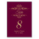 Burgundy elegante quadro de ouro Número da Mesa da mesa de casamento.
