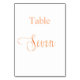 O número da tabela é escrito com um script de estilo elegante com letra manual. Rosa dourado, fundo branco. Este número de tabela também está disponível em preto.