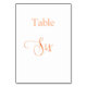 O número da tabela é escrito com um script de estilo elegante com letra manual. Rosa dourado, fundo branco. Este número de tabela também está disponível em preto.
