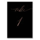 Estes cartões de mesa de casamento preto e ouro minimalistas vão adicionar um toque de elegância às suas configurações de casamento. Este simples modelo de design apresenta um moderno faux rosa gold calliographic que lê "Mesa 1". Por favor, veja a nossa loja I Love Weddingz para mais cartas de números de mesa neste conjunto. Os melhores votos para o seu casamento e casamento! Desenhada por Susan Coffey.
