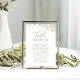 Este design apresenta uma carta de número da mesa de casamento com um roteiro elegante, simples, caligráfico, e um design de tipografia minimalista, perfeito para a recepção, com um fundo verde sábio e verde botânico e verde e folhagem