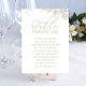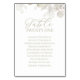 Este design apresenta uma carta de número da mesa de casamento com um roteiro elegante, simples, caligráfico, e um design de tipografia minimalista, perfeito para a recepção, com um fundo verde sábio e verde botânico e verde e folhagem