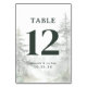 Este cartão de mesa de casamento apresenta uma cena serena da floresta com pinheiros altos em tons de verde e cinza suaves, criando uma atmosfera etérea. O design apresenta um número "12" em negrito no centro, cercado por amplo espaço negativo para maior clareza. Campos de texto personalizáveis permitem a personalização com nomes e datas, enquanto a tipografia combina fontes serifadas elegantes e sans-serif limpas para melhorar a legibilidade e o estilo. Perfeito para casamentos ou reuniões formais, este cartão exala tranquilidade e beleza inspirada na natureza, tornando-o um complemento ideal para qualquer cenário de evento.