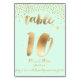 Mesa número 10 da PixDezines com pinceladas douradas, purpurina dourada falsa e fundo DIY verde menta.