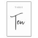 Cartões simples e chic em preto e branco clássico fazem uma declaração elegante no seu casamento ou evento. Design apresenta "mesa [number]" em uma combinação de olhares de serif clássica e de caracteres de script manuscritos. Design repete-se de ambos os lados. Cartões numerados individualmente vendidos separadamente; solicite cada número de tabela individualmente da nossa coleção.