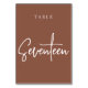 Cartões simples e chic em tons de terra, marrom e branco, fazem uma declaração elegante no seu casamento ou evento. Design apresenta "mesa [number]" em uma combinação de olhares de serif clássica e de caracteres de script manuscritos. Design repete-se de ambos os lados. Cartões numerados individualmente vendidos separadamente; solicite cada número de tabela individualmente da nossa coleção.