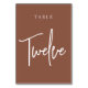 Cartões simples e chic em tons de terra, marrom e branco, fazem uma declaração elegante no seu casamento ou evento. Design apresenta "mesa [number]" em uma combinação de olhares de serif clássica e de caracteres de script manuscritos. Design repete-se de ambos os lados. Cartões numerados individualmente vendidos separadamente; solicite cada número de tabela individualmente da nossa coleção.