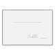 This wedding place card features a minimalist design with a clean white background and subtle grayish-blue accents. The layout is simple, with an elegant cursive script for the word "table" centered towards the bottom, flanked by thin horizontal lines that add balance to the composition. The modern aesthetic emphasizes negative space, creating a serene and sophisticated atmosphere perfect for weddings or formal events. Its understated elegance makes it ideal for those who appreciate contemporary style without excessive detail.