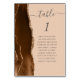 A borda esquerda desta elegante e moderna placa de número da mesa de casamento apresenta uma cor d'água marrom mocha, borda agitada, aparada com falso brilho dourado. A palavra "mesa" aparece no script de escrita manual de cinzas de carvão em um fundo bronzeado. Adicione os nomes dos seus convidados que estão atribuídos a cada mesa.