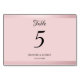 Cartão de número de mesa com modelo elegante de script moderno em rose dourado trendy.