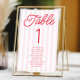 This is a Modern Minimal Minimalist Red Pink Stripes Wedding Table Number w/ Names!