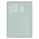 Cartões simples e chic em Sage Green e White fazem uma declaração elegante no seu casamento ou evento. Design apresenta "mesa [número]" em letra de script manuscrita, com nomes de convidado individuais abaixo na tipografia da serif do eterno. Design repete-se de ambos os lados.