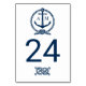 Cada placa numérica da tabela deve ser personalizada via "Personalizar" e adicionada individualmente ao carrinho de compro. A placa de número de tabela marinho azul e branco do tema náutico apresenta um monograma de âncora de barco e detalhes de corda e um padrão de faixa horizontal no verso.