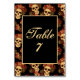 Este gótico número da mesa de casamento dá as boas vindas aos seus convidados para a mesa com um padrão de crânios assustadores flutuando num abismo negro atrás do seu texto do monograma. Cada crânio é adorado com rosas vermelhas para sua ocasião romântica no Halloween. Os seus olhos vazios e sem alma são nitidamente contrastados contra a coroa gótico e buquês de flores mortos. Par com o nosso gráfico de assentos de gótico.