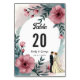 Este elegante número de mesa floral de aquarela é perfeito para um casamento moderno. A design romântica apresenta uma elegante estrutura floral de aquarela com uma ilustração noiva e noiva e caligrafia preta sobre fundo branco.