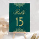 Cartão de número de mesa elegante com arte henna elegante contra um fundo verde-mar.
