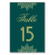 Cartão de número de mesa elegante com arte henna elegante contra um fundo verde mar.