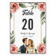 Este elegante número de mesa floral de aquarela é perfeito para um casamento moderno. A design romântica apresenta uma elegante estrutura floral de aquarela com uma ilustração noiva e noiva e caligrafia preta sobre fundo branco.