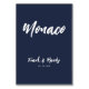 Para o casal moderno e criativo que quer atribuir seus locais de viagem favoritos às suas mesas de recepção de casamento em vez de apenas um número. Quer seja o seu nome de rua favorito, cidade, local de viagem no país do estado; este design simples mas versátil é para você! O marinho azul elegante e a tipografia branca também são personalizáveis. O cartão de mesa também contém nomes de recém-casados e data do casamento. Este assento de mesa de casamento ou cartão de atribuição faz parte dos Parabéns da Coleção de Casamentos Simples e Moderno do Amor no seu casamento!
