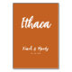 Para o moderno casal boêmico e criativo que quer atribuir seus locais de viagem favoritos às suas mesas de recepção de casamento em vez de apenas um número. Quer seja o seu nome de rua favorito, cidade, local de viagem no país do estado; este design simples mas versátil é para você! O fundo Elegante boho terracotta e a tipografia branca também são personalizáveis. O cartão de mesa também contém nomes de recém-casados e data do casamento. Este assento de mesa de casamento ou cartão de atribuição faz parte dos Parabéns da Coleção de Casamentos Simples e Moderno do Amor no seu casamento!