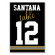 Cartão de mesa divertida, moderno e criativo em preto e branco dourado. Projetado para o casal moderno e esportivo que quer atribuir nomes a suas mesas de recepção em vez de apenas um número. Atualize com Sobrenomes APENAS de seus jogadores favoritos. (Recomendado para usar apenas sobrenomes, uma vez que os nomes de cheio são mais prováveis protegidos por direitos autorais) Três faixas esportivas personalizáveis para você combinar com suas cores favoritas. Parabéns no seu casamento!