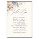 Cartão de 'mesa um' de casamento floral em azul poeirento e creme com escrita elegante e um modelo de texto para os nomes dos convidados.